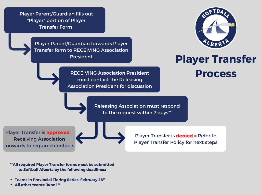 ALL players, U15 and under who wish to register on a team outside their own local association for the softball season must apply each year for a Player Transfer. This Player Transfer will be accepted by Softball Alberta subject to the release of the player from their home association only. If you have any questions regarding this form, please contact your District Organizer.